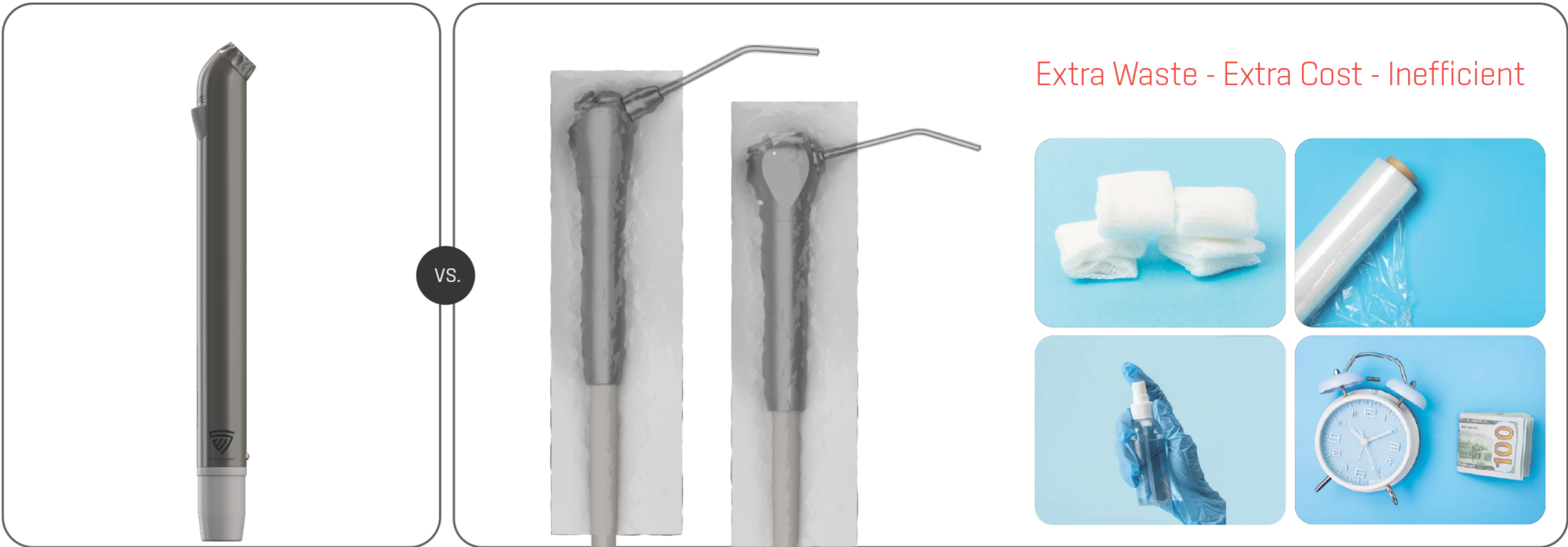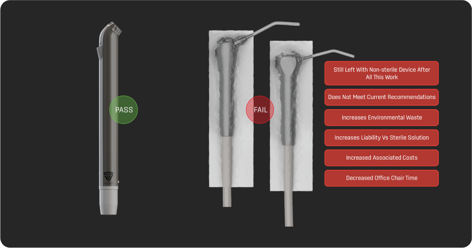 Using a non-sterile wrapped device vs a sterile air/water syringe will cost more time and money in the long run. Stop wrapping, start sterilizing saving time and money.